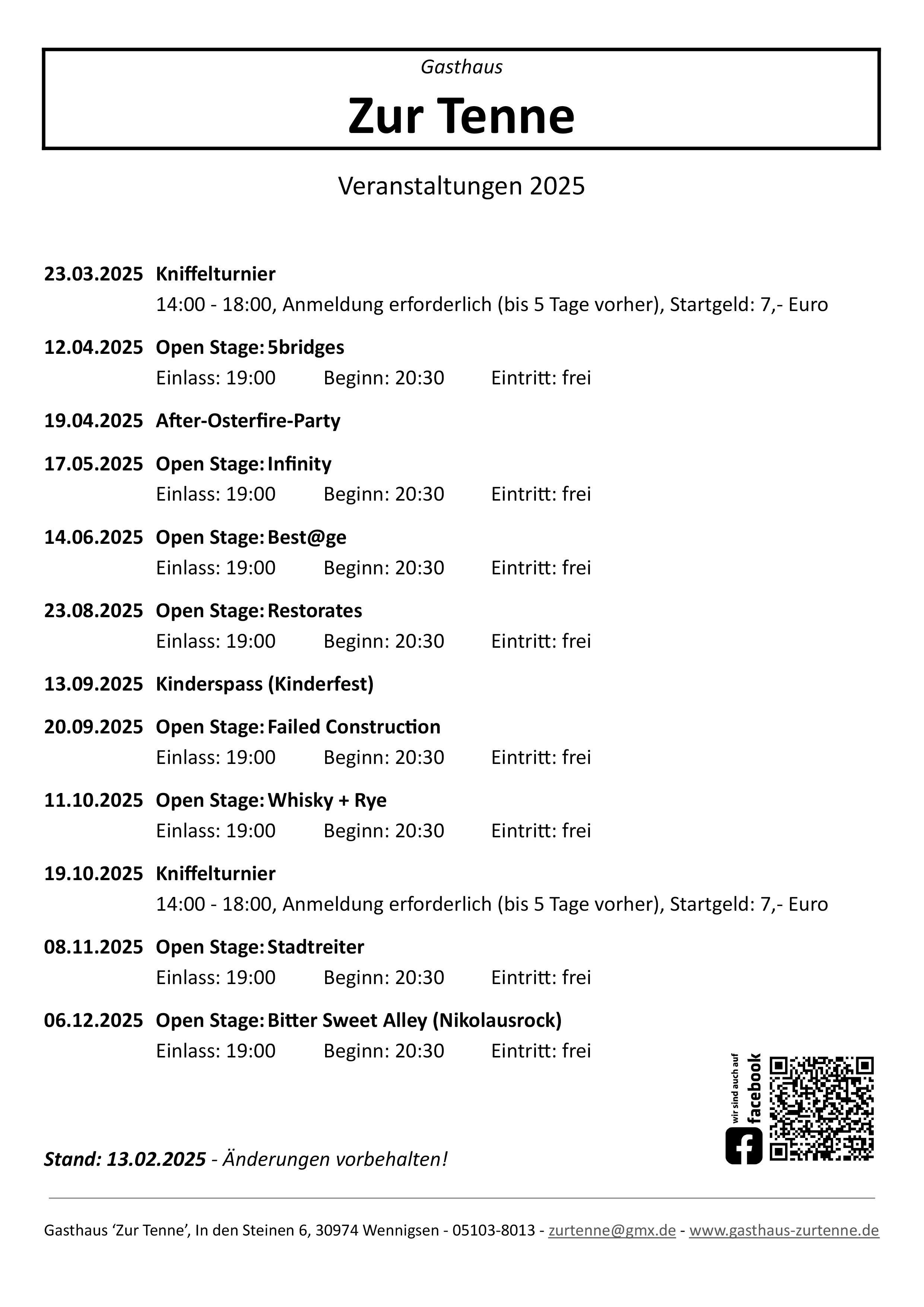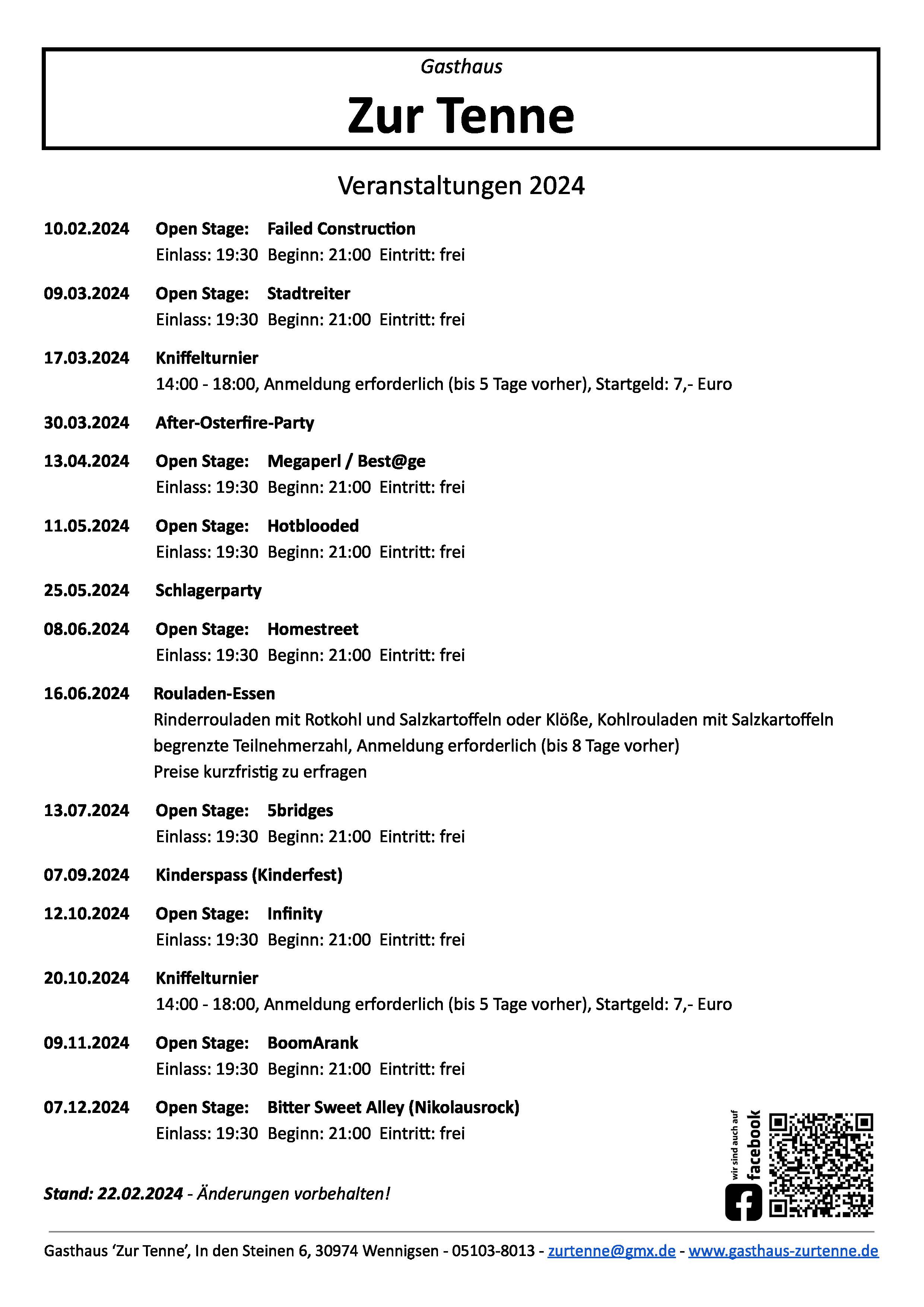 Gasthaus 'Zur Tenne'In den Steinen 630974 Wennigsen/DegersenTelefon: 05103-8013Facebook